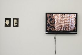 In his series of works based on the Café Odeon, Uriel Orlow presents us with a film’s exploded elements: shards of research, location scouting, casting. The characters, the café’s denizens, are rendered as iconic pin-ups, but while some are immediately recognisable – Brecht, Lenin, Einstein – many remain intransigently unfamiliar. Meanwhile the café itself decomposes into its elements: its illustrious history becomes untethered from its physical facts, its marble and wood, which seem to open up onto their own more primeval histories. These moments of close attention to surfaces and materials – of ‘vulgar materialism’, as Lenin might have put it – represent a limit, the point at which we must ask what really constitutes this place: can mere matter have a history? […]”