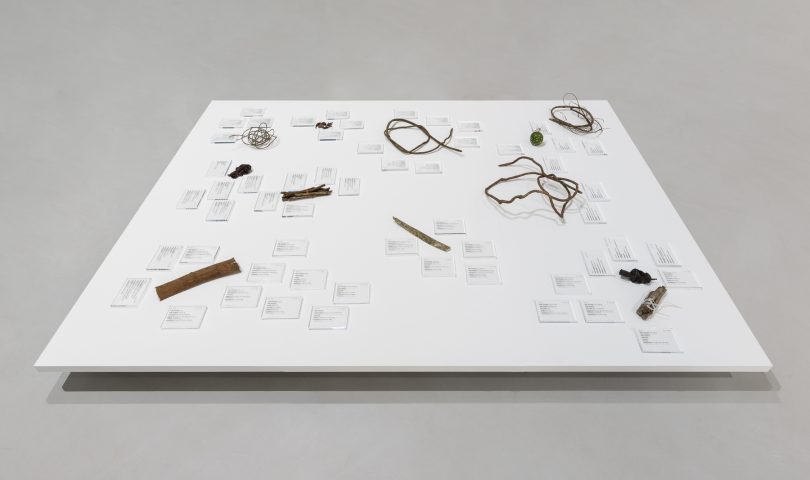 Projects Forest Times brings together 4 projects by artist Uriel Orlow- Dedication, 2021, Forest Essentials Takes Two, 2022, Reading Wood (Backwards), 2022, and Forest Futurism, 2024, in which plants are simultaneously political actors, witnesses to […] Forest Times Artemisia afra, an indigenous medicinal plant, effectively treats and prevents malaria and can simply be taken as an infusion. Despite studies that show its effectiveness and the simplicity of its […] Learning from Artemisia Soil Affinities takes its starting point in Aubervilliers’ 19th century market gardening past which ended when factories started to take over, around the same time as European countries, including France, […] Soil Affinities Wishing Trees was commissioned and premiered by Manifesta 12 in Palermo. The multi-part work brings together three Sicilian trees that hold memories of significant events and people, connecting human histories and […] Wishing Trees Theatrum Botanicum is a major new body of work and ongoing research, which looks to the botanical world as a stage for politics at large through film, photography, installation and […] Theatrum Botanicum Unmade Film is an impossible film, fragmented into its constituent parts; an expansive collection of audio-visual works that point to the structure of a film but never fully become one. […] Unmade Film In 1956, when President Nasser announced the nationalisation of the Suez Canal from the balcony of the Cotton Exchange in Alexandria, the people immediately toppled the statue of Ferdinand de […] fig. The starting point of The Short and the Long of It is an extra-ordinary episode which has all but disappeared from official histories; namely, the failed passage of fourteen international […] The Short and the Long of It Remnants of the Future takes as its starting point a ghost city in Northern Armenia near the Georgian and Turkish borders, a factory that once produced over 50% of the […] Remnants of the Future “Taking as his starting point the British Punitive Expedition of 1897 (a military excursion by British forces in which the British invaded, burned and ransacked the ancient West African Kingdom […] Benin Project In These Great Times takes as its starting point the famous art-nouveau café Odeon in Zurich. The café can be understood as a historical ‘Nebenschauplatz’, a minor site whose history […] In These Great Times Deposits explores different facets of a singular approach to the problematic of making art as a means to produce remembrance of the Holocaust. It develops a notion of history in […] Deposits Works Painted azulejo tiles and embroidered textile, 90 x 90 cm each The Lamb, the Elephant, and the Clove (An Allegory) 2025 Wooden instruments, stone and acoustic elements, created in collaboration with Tobias Koch, Variable dimensions, 2024 Voicing the Forest 2024 Volcanic stone, produced in collaboration with Athena Marmi, Vicenza , Variable dimensions, 2024 Stone Forest (An Epilogue) 1 à 11 Video, colour, with 5.1 sound, 24 min. produced in collaboration with BAU and ateliers bermuda, 2024 We Have Already Lived Through Our Future – We Just Don’t Remember It 2024 Print on paper, Variable dimensions, 2024 Forest Manifesto 2024 I already walked in the forest with my grandfather and father, and now I’m going alone , 2025; 4K video, colour, sound, 77’27” I already walked in the forest with my grandfather and father, and now I’m going alone 2025 Timber Testimonies (São Tomé), 2025 Acrylic with UV print (10.5×14.85 cm), roots, bark and other plant materials from São Tomé, dimensions variable Timber Testemonies (São Tomé) 2025 Echoes of Green, 2025; 30 pencil drawings on paper, 21×29,7 cm Echoes of Green 2025 Welcome Weeds, 2024-ongoing, Custom planters, local edible/medicinal weeds including nettles, red clover, plantain, sorrel, lemon balm, nepeta, sow thistle, Canada thistle Welcome Weeds 2024 21 prints on Hahnemühle paper, 2024 Flora Peruana Uriel Orlow: The Garden, The River (A Conversation), two-channel video, 2024 The Garden, The River (A Conversation) 2024 Uriel Orlow: Mangoes of Goan Origin (An Archive), 20 prints, 4 colour lithograph with serigraphy, 28cm x 28cm, framed, 2024 Mangoes of Goan Origin (An Archive) 2024 Film, prints and sculptures, 2024 Forest Futurism 2024 Reveries of Collective Walkers (Oxford) Reveries of Collective Walkers (Geneva) 2023 Proposal for a garden (Geneva), 2023, Wood, earth, plants, Variable dimensions Proposal for a Garden (Geneva) 2023 Juchart 2049, 2023, reinforced iron, forest marking paper Juchart 2049 2023 diptych, wood cut on Japanese paper and silkscreen print on wood, 46 x 62cm, 2022 Forest Essentials Take Two 2022 installation, 2022 Reading Wood (Backwards) 2022 three-channel video, objects, garden, wall painting, 2020-2022 Botany of Death, Botany of Life 2022 three printed maps distributed for free, 2022 Botanical Becontree 2022 Tori Bari (After Yellow), 2022 Tori Bari (After Yellow) 2022 Up, Up, Up 2021 5-screen HD video installation, 3'21'', 2021 Dedication 2021 HD video and installation Learning from Artemisia 2019 / 2020 Soil Affinities, installation views Kunsthalle Mainz Soil Affinities 2017 / 2018 8-channel video installation with sound, durations variable photograph mounted on aluminium 150 x 105 cm, two framed photographs, 40 x 26 cm, documents and artefacts in vitrine, 2018 Wishing Trees 2018 Two-channel HD video with sound, 13'30", 2017 Veilleurs d’Images 2017 Imbizo Ka Mafavuke, 2017 , HD video with sound, 28' Imbizo Ka Mafavuke (Mafavuke’s Tribunal) 2017 Single-channel HD video with sound, 17’, 2017 Muthi 2017 Chromogenic photograph on Diasec, 90cm x 60cm, 2015 Bounds 2016 Single-channel HD video with sound, 18’, 2016 The Crown Against Mafavuke 2016 Single-channel video, 5’22”, 2016 The Fairest Heritage 2016 Black and white photographs, 120cm x 150cm, 2016 The Memory of Trees 2016 Wallpaper, vintage postcards, rack, 2016 Geranium