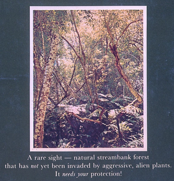 Colonial plant migration did not just include new garden plants for Europe. Over the past three and a half centuries almost 9,000 different exotic plants have been introduced in South Africa for the purposes of providing timber and fuel, food and to beautiful gardens with plants from ‘back home’. Some 200 of these new arrivals naturalised over time and became invasive, having devastating effects on endemic flora and threatening biodiversity. Awareness of the problem of so-called ‘invasive aliens’ has grown over the last decades, with publications, posters and eradication campaigns trying to save indigenous biodiversity but also producing a new form of botanical nationalism whose language of invasion can be seen to mirror the political climate of the time.