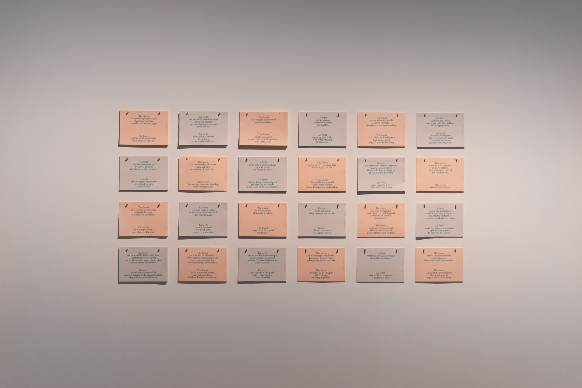 Manifesto is a piece that can be consulted and taken by visitors, proposing a reflection on a future inspired by the lessons that trees can teach us – “The forest invites us to notice, to listen and to be”.
