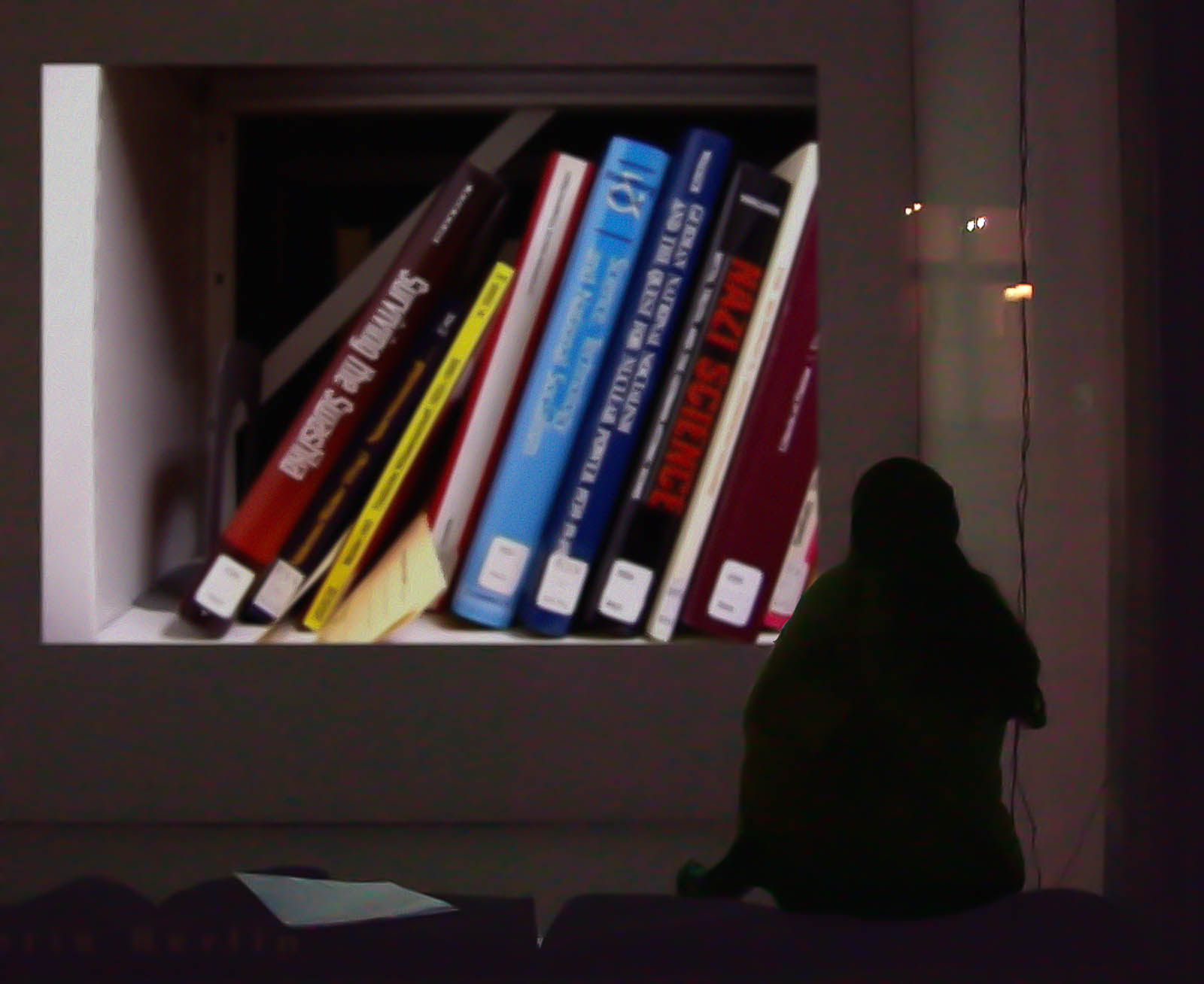 Housed Memory constitutes an exhaustive video archive of the collections held by the Wiener Library, London. The Wiener Library has its roots in early 1930’s Berlin but has been based in London since 1938 and was the first Holocaust archive in the world. The collections includes eyewitness accounts, collections of documents, books, photographs and films. The video is an endless but discontinuous, handheld tracking shot, in which the camera takes on the role of an historical witness and records—shelf by shelf—the contents of the archive. Nine hours in duration, Housed Memory both reveals the sheer materiality of a collection which is otherwise hidden from view and at the same time produces the sense of the unknowable in the face of a totality which cannot be grasped.