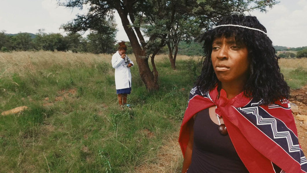 Imbizo Ka Mafavuke (Mafavuke’s Tribunal) is an experimental documentary set at the edge of a nature reserve in Johannesburg. A kind of Brechtian ‘Lehrstück’, the film shows the preparations for a people’s tribunal where traditional healers, activists and lawyers come together to discuss indigenous knowledge and bio-prospecting. The pharmaceutical industry has come to consider traditional medicine as a source for identification of new bioactive agents that can be used in the preparation of synthetic medicine. This raises new questions about intellectual copyright protection of indigenous knowledge. Imbizo Ka Mafavuke asks who benefits when plants become pharmaceuticals, given multiple claims to ownership, priority, locality and appropriation. The protagonists in the film slip into different roles and make use of real-world cases involving multinational pharmaceuticals scouting in indigenous communities for the next wonder drug. Ghosts of colonial explorers, botanists and judges observe the proceedings.