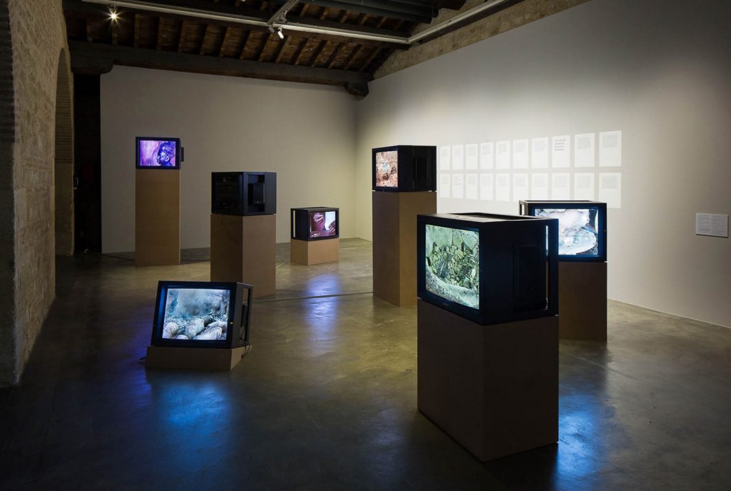 So what is their status and who are they for? Lost Wax does not directly answer these questions but instead creates an immersive environment, a visual and auditory mise-en-scène of the extraordinary interplay of materials and the ‘dance’ of the hands working on them. The visual and auditory constellation of the spread-out monitors mirrors the shared labour and the simultaneity of different processes and stages of production. Lost Wax creates a tactile portrait of the skills and gestures inloved in making the metal castings: the careful handling and preparation of the basic elements – earth, wax, discarded metal, wood, fire – the modelling of a clay core, the precise application of details with wax, the minutely timed stages of the casting process itself and finally the filing and polishing.