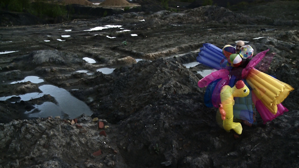 In Sounds from Beneath a desolate disused colliery in East Kent, once populated with workers, machines and the sounds of their activities, is brought back to life through song. The video centres around a choral piece for which Mikhail Karikis invites an ex-miners’ choir to recall and sing the subterranean sounds of a working coal mine. It transforms into an amphitheatre resonating sounds of explosions in the ground, machines cutting the coal-face, shovels scratching the earth and the distant melody of the Miner’s Lament, all sung by Snowdown Colliery Welfare Male Voice Choir grouping in formations reminiscent of picket lines.
